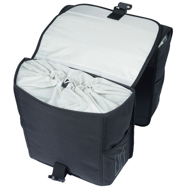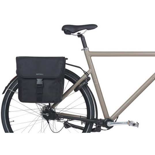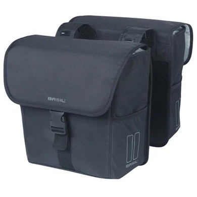 De Basil Go 32 ltr zwart dubbele fietstas is een zwarte dubbele fietstas voor achterop, perfect voor mensen die veel onderweg zijn met de fiets. Een fietsrit naar de supermarkt of een fietstochtje naar die vriend, deze moderne Basil Go 32 ltr zwart dubbele fietstas maakt jouw fietsrit makkelijker en leuker. De Basil Go 32 ltr zwart dubbele fietstas is afsluitbaar met aansnoerkoord en kliksluiting. Er zijn twee verstelbare banden aanwezig waardoor er ruimte is voor je snelbinders, een kinderzitje, veerklem of bagagedrager. De elastische zijvakken bieden ruimte voor een flesje water of (wanneer nodig) een paraplu. De Basil Go 32 ltr zwart dubbele fietstas is gemaakt van hoogwaardig materiaal en heeft een inhoud van maar liefst 32 liter. Zo heb je in ieder geval genoeg ruimte voor de boodschappen, je sportkleding of andere benodigdheden. Met behulp van de riempjes is de Basil Go 32 ltr zwart dubbele fietstas eenvoudig op diverse bagagedragers (ook e-bikes) te bevestigen. Door de reflectiedetails ben je beter zichtbaar in het donker.