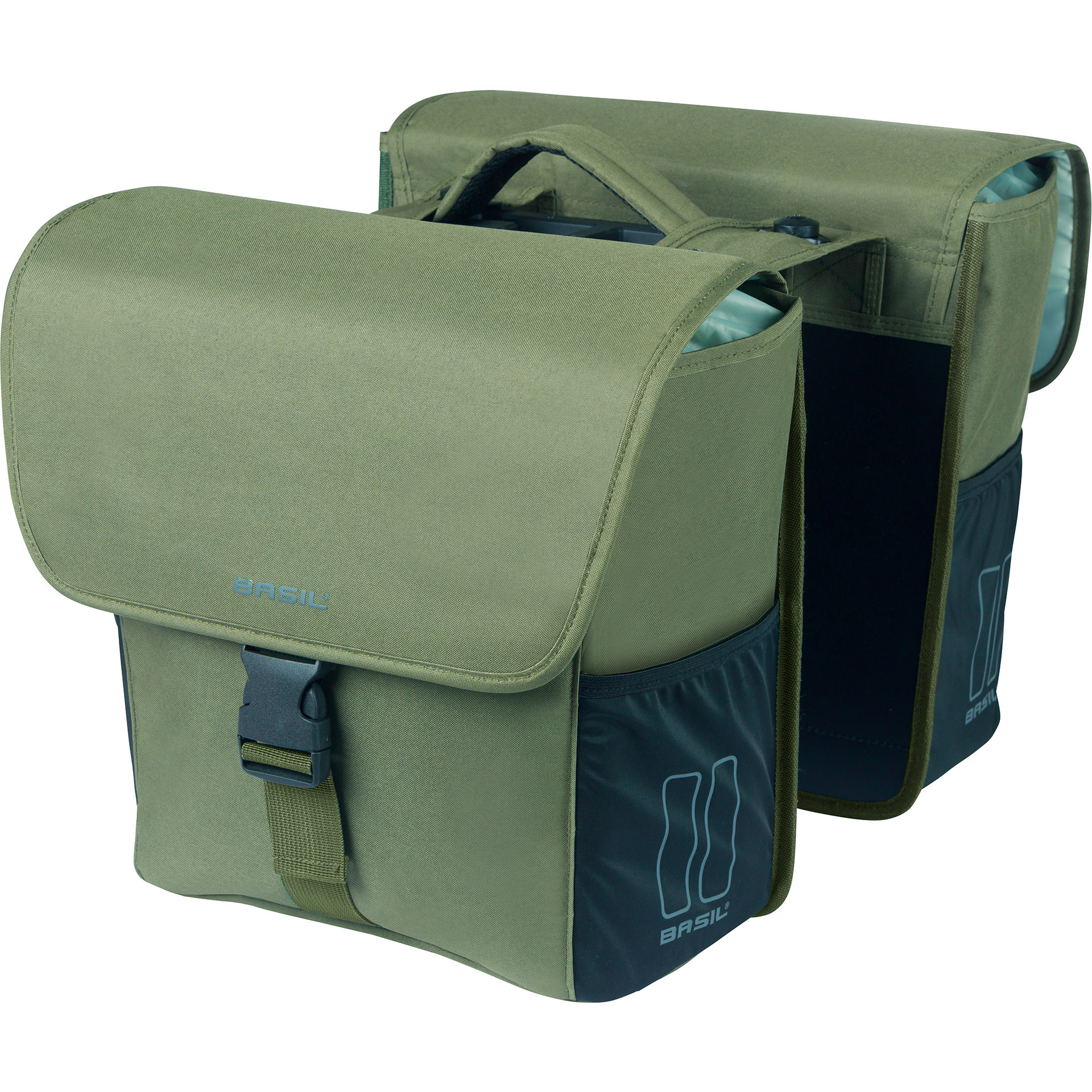 De Basil Go MIK 32 ltr donkergroen dubbele fietstas is een zwarte dubbele fietstas voor achterop een MIK bagagedrager, perfect voor mensen die veel onderweg zijn met de fiets. Een fietsrit naar de supermarkt of een fietstochtje naar die vriend, deze moderne Basil Go MIK 32 ltr donkergroen dubbele fietstas maakt jouw fietsrit makkelijker en leuker. De Basil Go MIK 32 ltr donkergroen dubbele fietstas is afsluitbaar met aansnoerkoord en kliksluiting. Met het MIK bevestigingssysteem zijn de tassen gemakkelijk van de bagagedrager te verwijderen. De elastische zijvakken bieden ruimte voor een flesje water of (wanneer nodig) een paraplu. De Basil Go MIK 32 ltr donkergroen dubbele fietstas is gemaakt van hoogwaardig materiaal en heeft een inhoud van maar liefst 32 liter. Zo heb je in ieder geval genoeg ruimte voor de boodschappen, je sportkleding of andere benodigdheden. Met behulp van de riempjes is de Basil Go MIK 32 ltr donkergroen dubbele fietstas eenvoudig op diverse bagagedragers (ook e-bikes) te bevestigen. Door de reflectiedetails ben je beter zichtbaar in het donker.