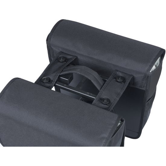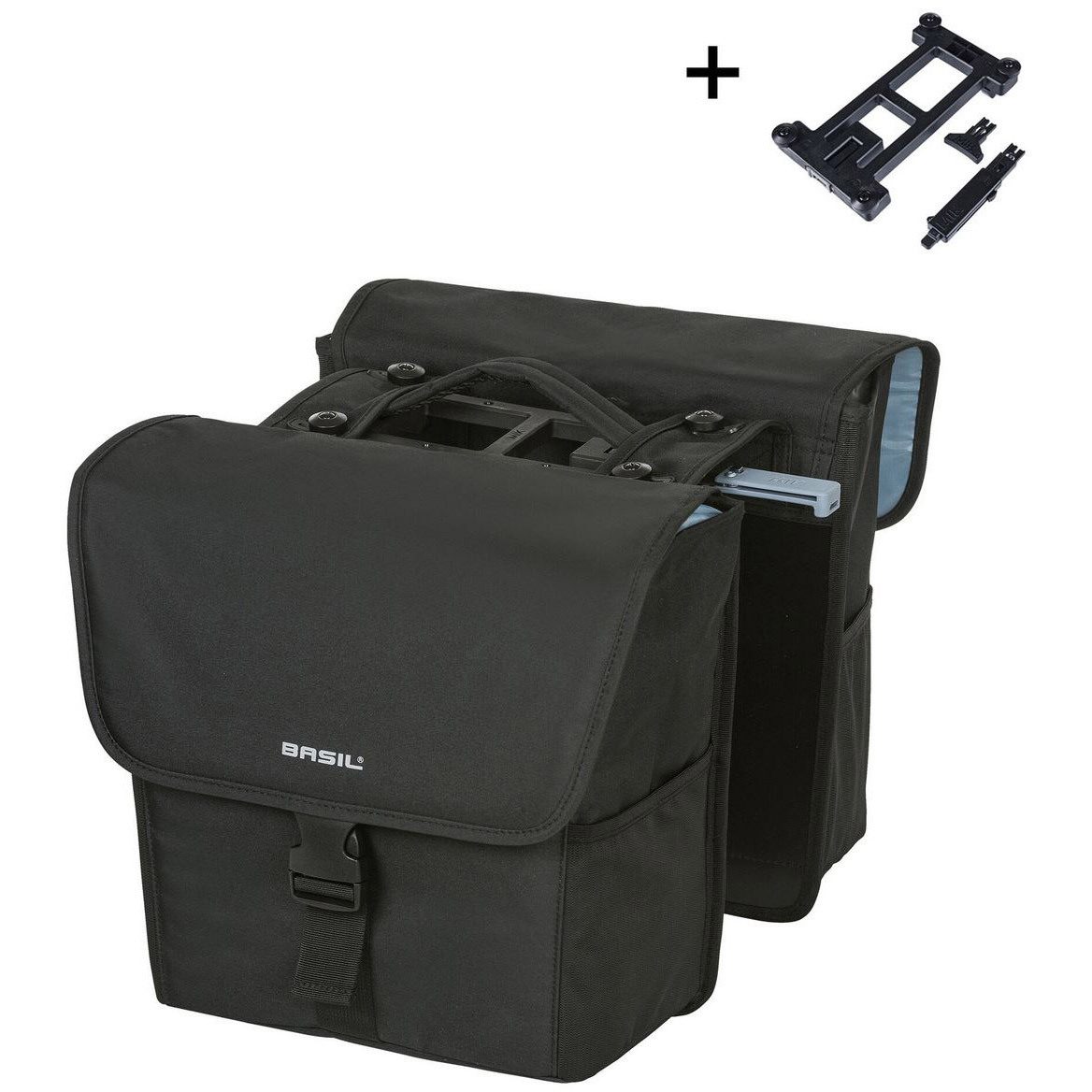 De Basil Go MIK 32 ltr zwart dubbele fietstas is een zwarte dubbele fietstas voor achterop een MIK bagagedrager, perfect voor mensen die veel onderweg zijn met de fiets. Een fietsrit naar de supermarkt of een fietstochtje naar die vriend, deze moderne Basil Go MIK 32 ltr zwart dubbele fietstas maakt jouw fietsrit makkelijker en leuker. De Basil Go MIK 32 ltr zwart dubbele fietstas is afsluitbaar met aansnoerkoord en kliksluiting. Met het MIK bevestigingssysteem zijn de tassen gemakkelijk van de bagagedrager te verwijderen. De elastische zijvakken bieden ruimte voor een flesje water of (wanneer nodig) een paraplu. De Basil Go MIK 32 ltr zwart dubbele fietstas is gemaakt van hoogwaardig materiaal en heeft een inhoud van maar liefst 32 liter. Zo heb je in ieder geval genoeg ruimte voor de boodschappen, je sportkleding of andere benodigdheden. Met behulp van de riempjes is de Basil Go MIK 32 ltr zwart dubbele fietstas eenvoudig op diverse bagagedragers (ook e-bikes) te bevestigen. Door de reflectiedetails ben je beter zichtbaar in het donker.