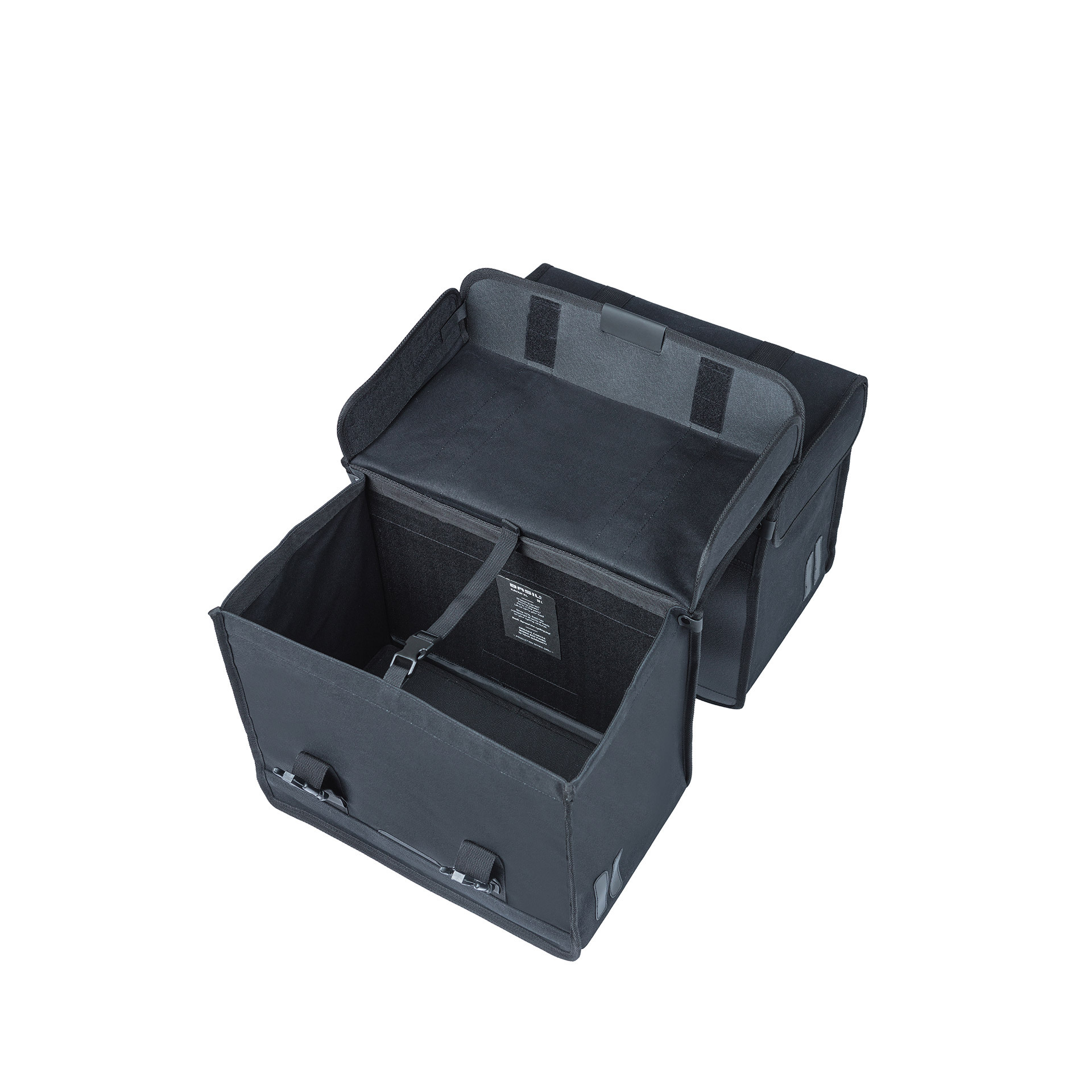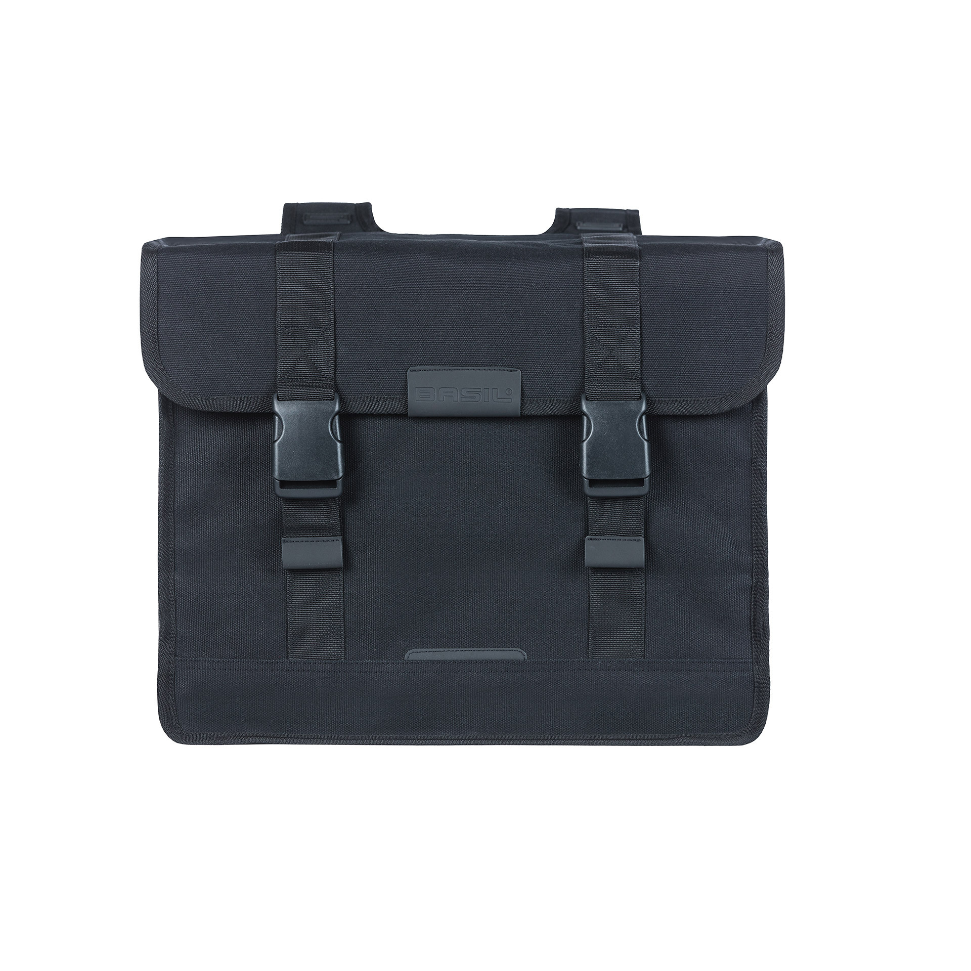 De Basil Kavan Eco Classic 58 ltr zwart dubbele fietstas is gemaakt van een innovatief duurzaam katoenen canvas. Deze Basil Kavan Eco Classic R58 ltr zwart dubbele fietstas wordt eenvoudig bevestigd op de bagagedrager van een dames- of herenfiets. Met een totale inhoud van 58 liter is het geen probleem om flink wat bagage of boodschappen te vervoeren in deze tas. Ga je altijd met je fiets naar de winkel? Of fiets je dagelijks naar je werk? Dan is de Basil Kavan Eco Classic 58 ltr zwart dubbele fietstas zeker voor jou geschikt. Deze Basil Kavan Eco Classic 58 ltr zwart dubbele fietstas komt altijd goed van pas, ook als je lange fietstochten maakt en een lunchpakket wilt meenemen.