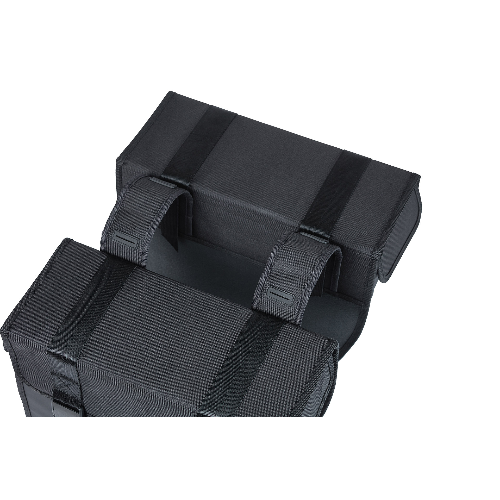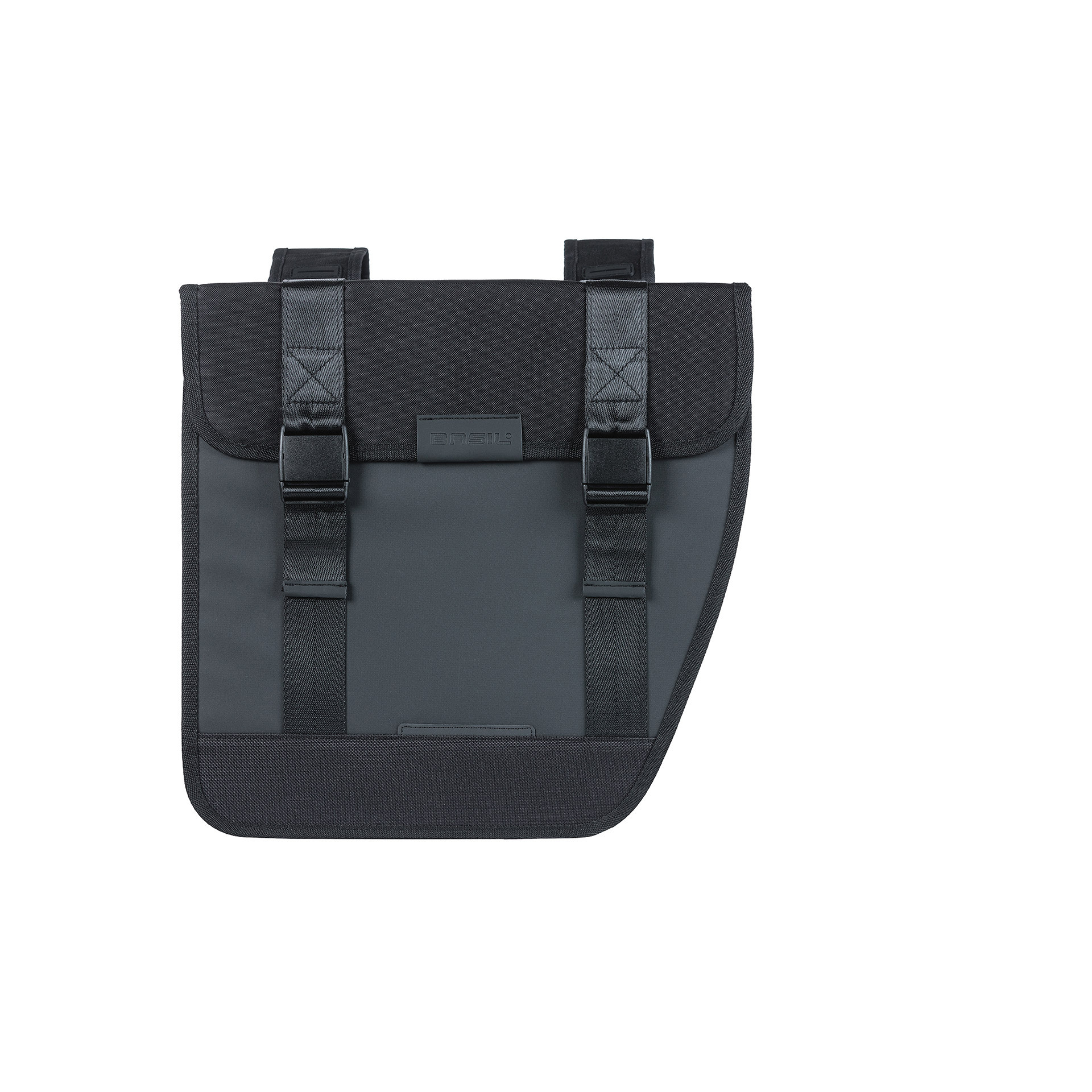 De Basil Tour Waterproof XL 35 ltr zwart dubbele fietstas is een waterdichte zwarte fietstas voor achterop een dames- of herenfiets. De Basil Tour Waterproof XL 35 ltr zwart dubbele fietstas zit vol verrassingen. Zo is er dankzij de inhoud van 35 liter volop ruimte om spullen te vervoeren op je fiets. Deze dubbele tas komt dan ook goed van pas bij het doen van boodschappen, maar ook als je besluit te gaan toeren met de fiets is de Basil Tour Waterproof 28 ltr zwart dubbele fietstas onmisbaar. De dubbele fietstas is netjes afgerond zodat je er niet met de hak van je schoen tegenaan trapt en is gemaakt van waterdicht tarpaulin-600D polyester. Dit betekent dat de Basil Tour Waterproof XL 35 ltr zwart dubbele fietstas waterdicht is. De extra versteviging in de tassen voorkomt slap hangen. Door de uitsparingen bovenop en afgeronde voorzijden past de Basil Tour Waterproof XL 35 ltr zwart dubbele fietstas op elke fiets en houdt het rekening met bijvoorbeeld eventuele snelbinders, een ledachterlicht of een kinderzitje.