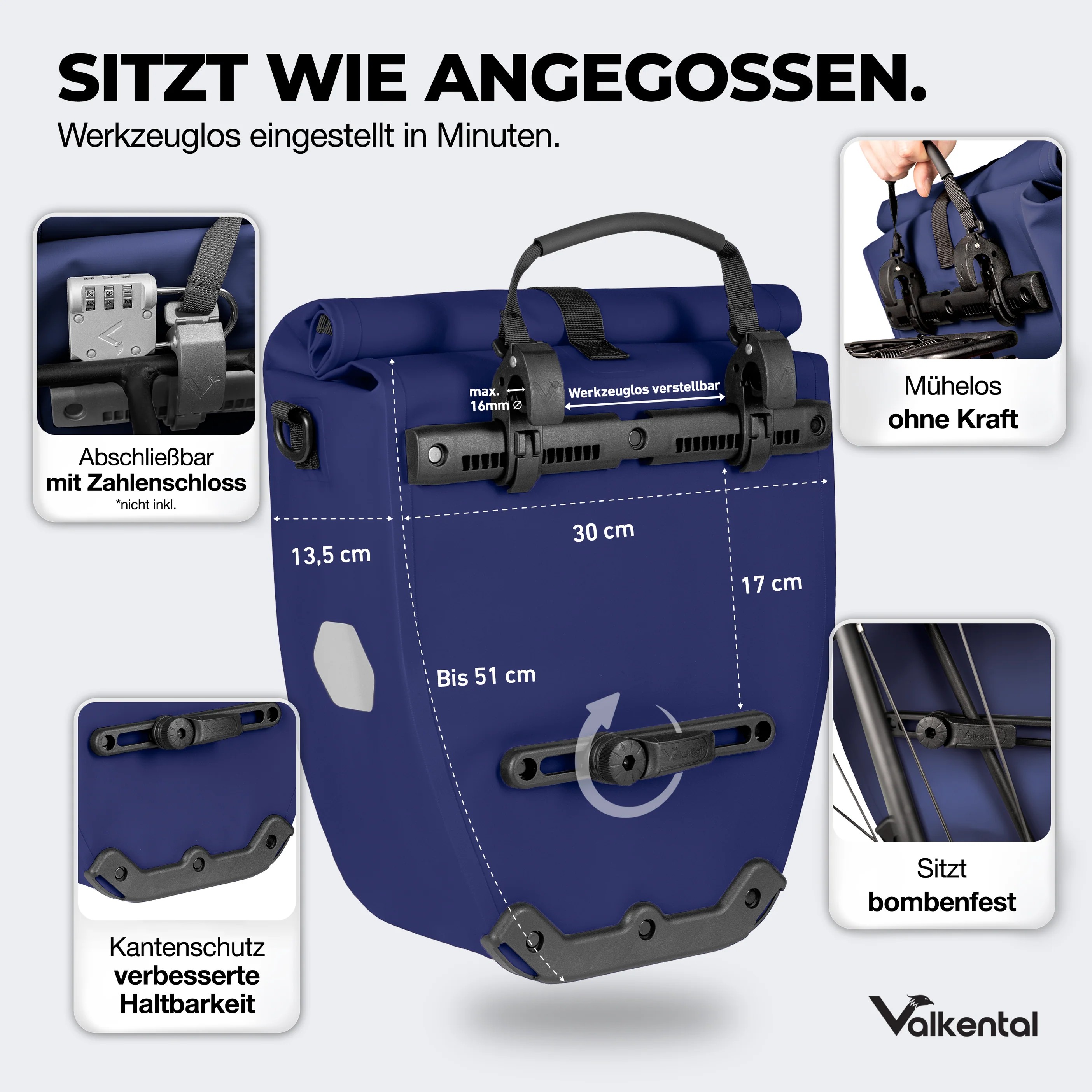 Valkental Bike Bag 20 ltr blue enkele fietstas