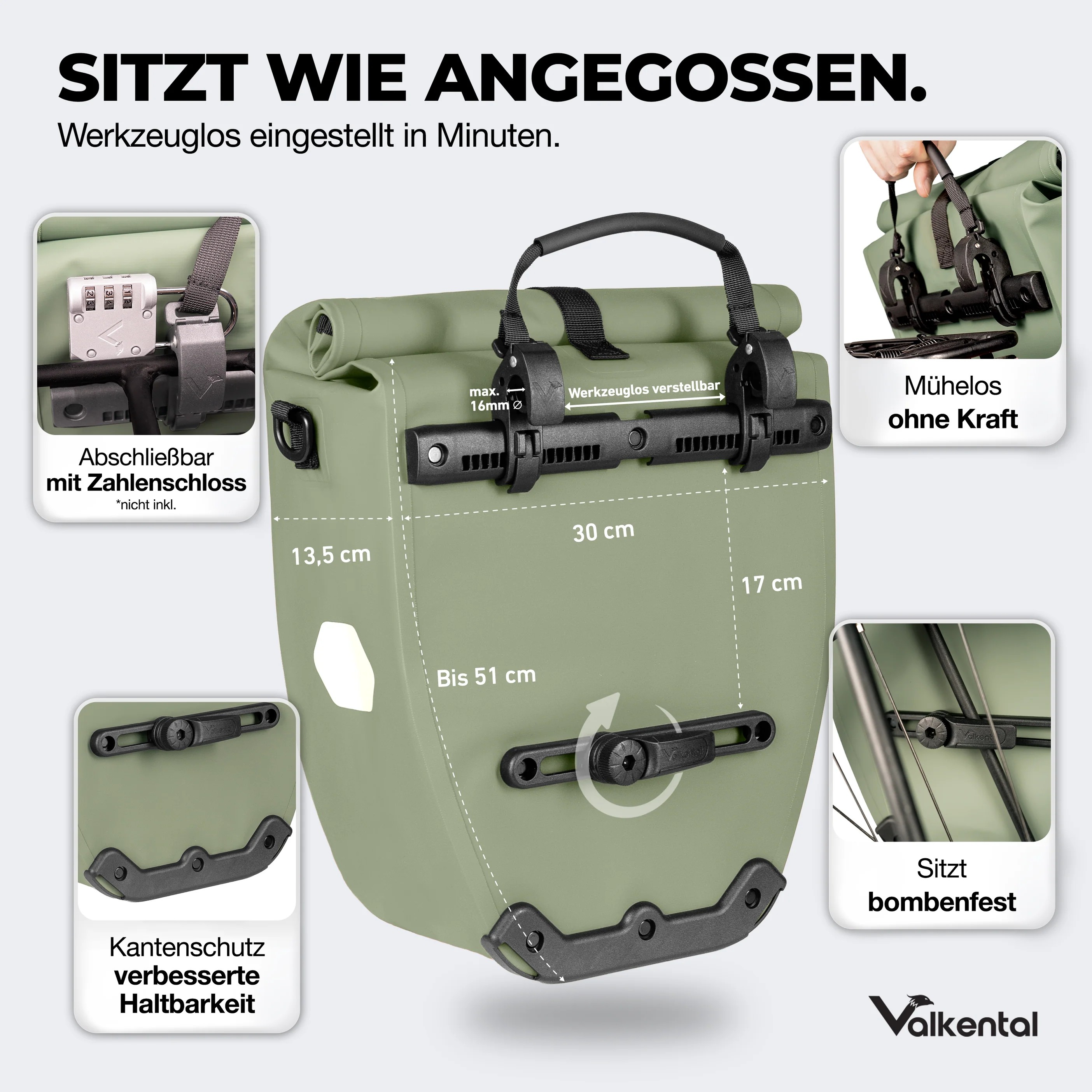 Valkental Bike Bag 20 ltr green enkele fietstas