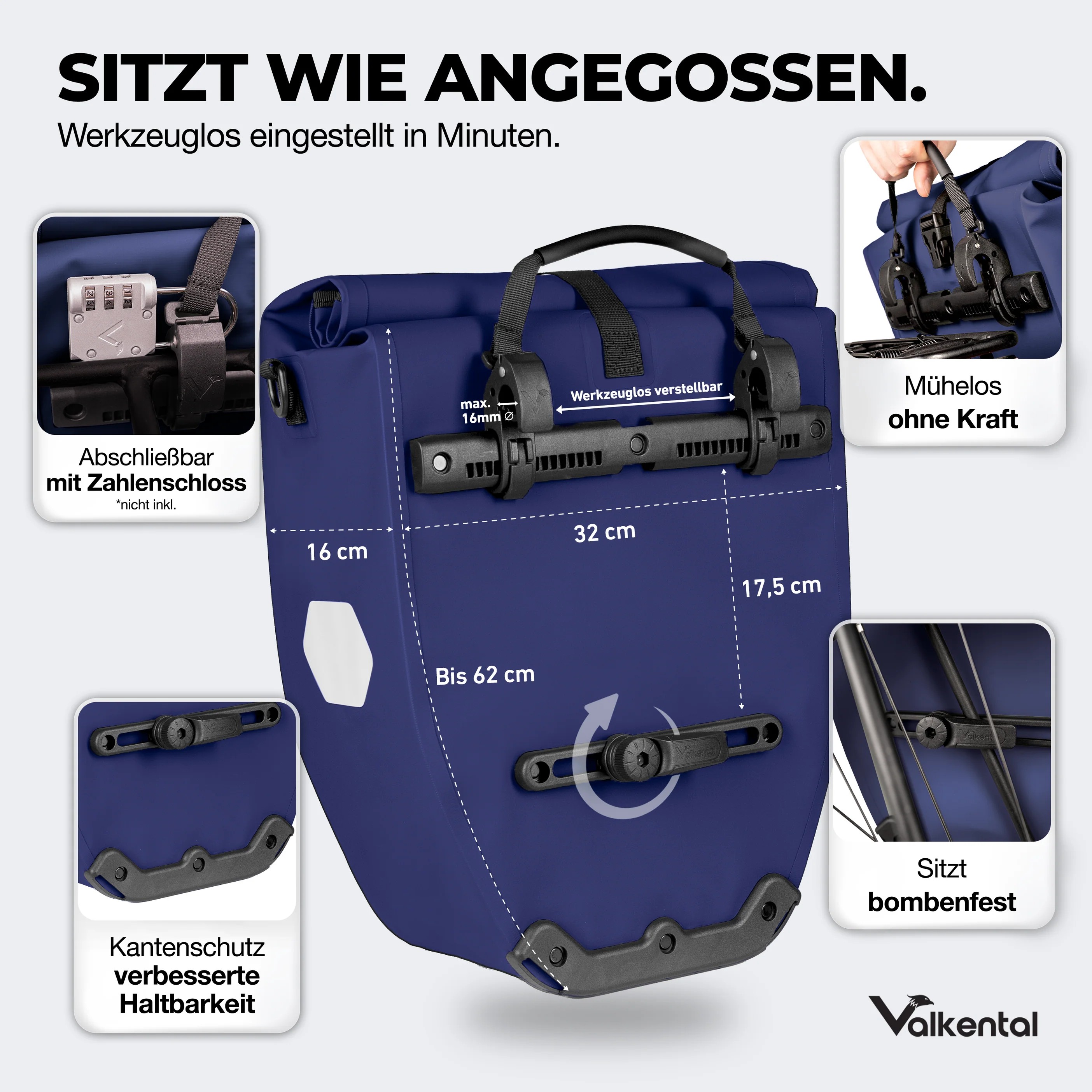 Valkental Bike Bag 28 ltr blue enkele fietstas