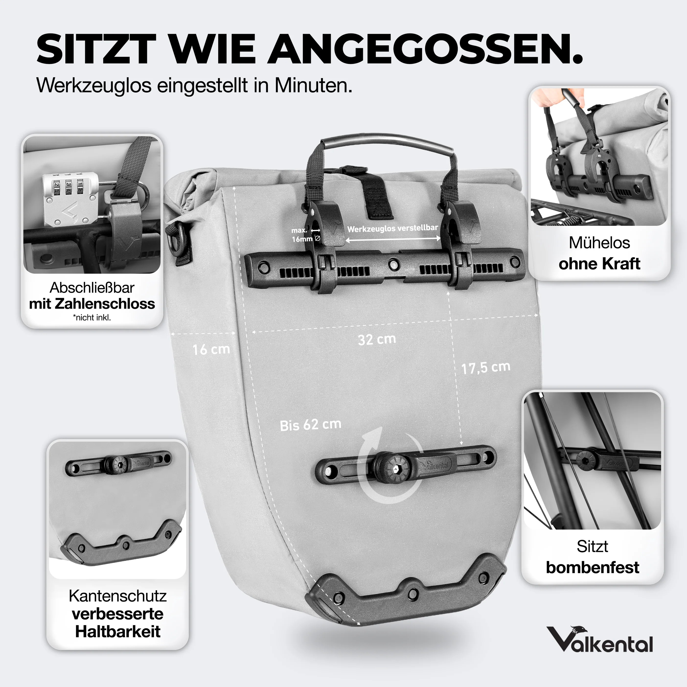 Valkental Bike Bag 32 ltr reflective enkele fietstas