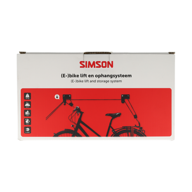 De ideale hulp voor onderhoud en opslag. Deze extra sterke lift is speciaal ontwikkeld voor zware e-bikes tot 54 kg. Met het katrolsysteem trek je de fiets moeiteloos tot 3 meter hoogte. Inclusief extra draagbanden voor het opbergen van dakkoffers of surfplanken.