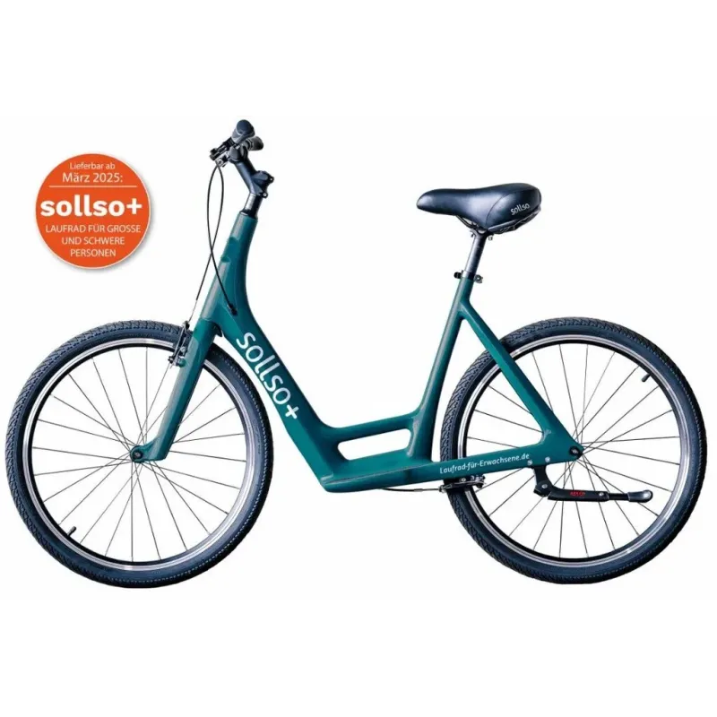 De Sollso Plus petrol is een lichtgewicht carbon loopfiets met lage instap frame voor lagere en/of zwaardere volwassenen. Deze Sollso Plus petrol carbon loopfiets weegt slechts 6,3 kg en is daardoor zeer gemakkelijk handelbaar. De 24inch wielen rollen comfortabel en het zadel is naar wens af te stellen. De Sollso Plus petrol carbon loopfiets is geschikt voor personen van 175 tot 200 cm en tot een gewicht van 150 kg. Voor personen onder de 175 cm en onder de 100 kg hebben we de Sollso Elan loopfiets beschikbaar. Voor extra gemak is de Sollso Plus petrol carbon loopfiets voorzien van een stevige standaard zodat je hem gemakkelijk kunt parkeren. De Sollso Plus petrol carbon loopfiets met carbon frame is designed in Duitsland en van extreem hoge kwaliteit.