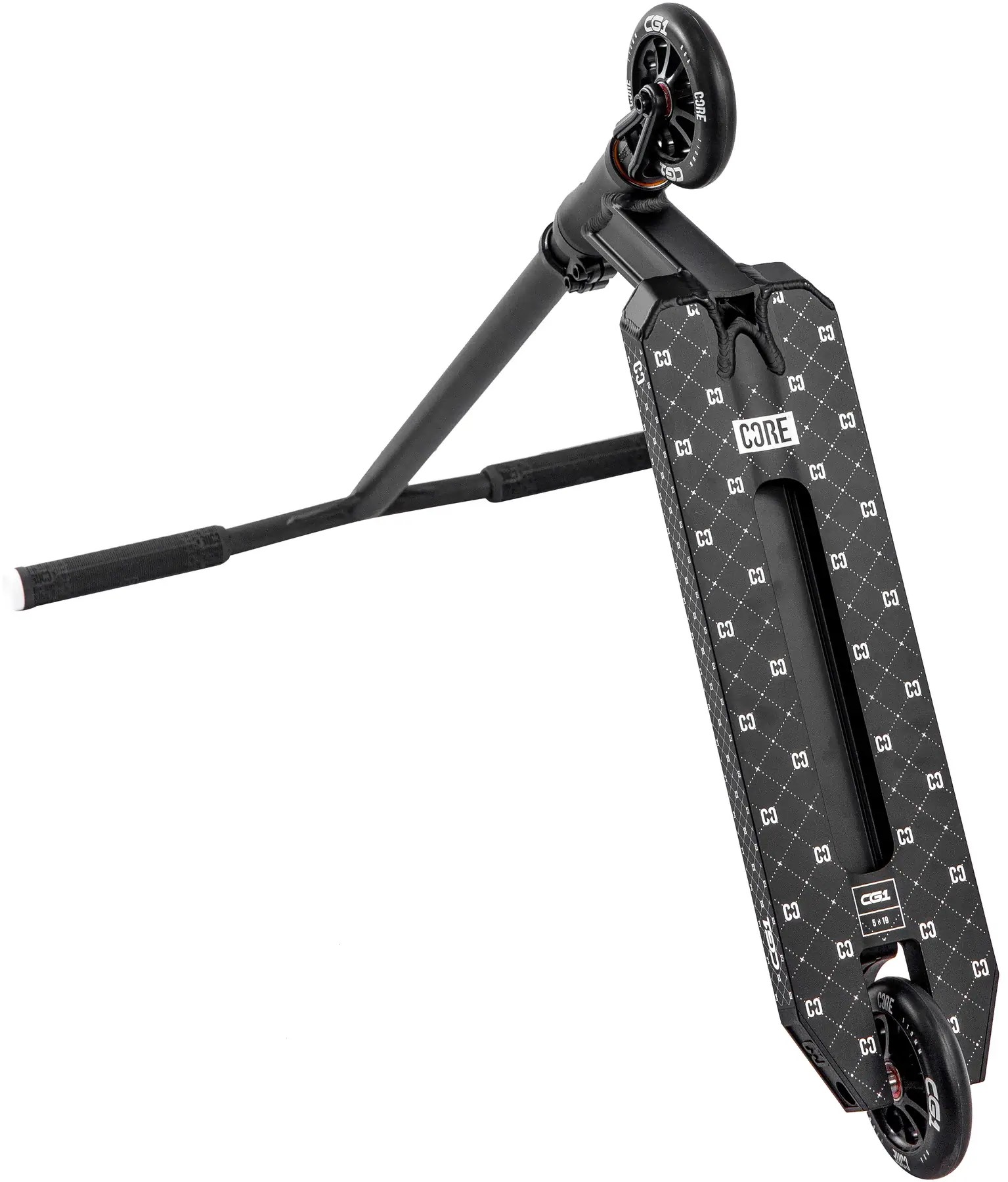 De Core CG1 is een stuntstep voor superieure prestaties van het Engelse merk Core. Het Engelse Core is gespecialiseerd in het maken van zeer hoogwaardige stuntsteps en beschermings materialen voor scaters en BMXers. Deze Core CG1 is perfect voor de gemiddelde en gevorderde stuntstepper. Met een totale hoogte van 81cm en een gewicht van slechts 3600 gram is hij stabiel en gemakkelijk hanteerbaar. Het 19 inch aluminium 6000 series deck uit 1 geheel van de Core CG1 is robuust en zorgt voor een stevige en stabiele basis. Het IHC compressie systeem is gemakkelijk te onderhouden en zorgt voor een soepel stuurgedrag. Verder is de Core CG1 uitgerust met chromoly Y-bars, 110mm aluminium core wieltjes en ABEC 9 lagers. Met de peg-cut dropout vorm maakt dit alles deze Core CG1 een perfecte stuntstep voor de pumptrack of scatebaan.