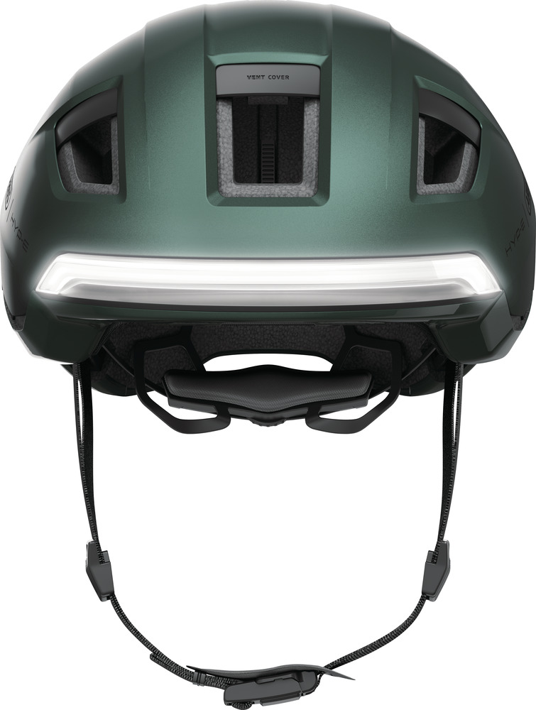 Met de Abus Hyp-E fietshelm wordt je niet alleen gezien maar ook begrepen. Deze helm brengt een revolutie teweeg in de interactie tussen fietsers en andere weggebruikers. Door de moderne verlichtingstechnologie met intuitieve afstandsbediening van de Abus Hyp-E ben je niet alleen beter zichtbaar, maar kun je ook duidelijk aangeven wanneer je van richting of rijbaan wilt wisselen. De in de helm geintegreerde voor en achter verlichting is zeer goed zichtbaar en met de meegeleverde USB C kabel oplaadbaar. Met de draadloze en tevens oplaadbare afstandsbediening op het stuur bedien je eenvoudig de richtingaanwijzer op de helm. Optioneel kun je ook de draadloze en oplaadbare bediening voor het remlicht selecteren zodat je ook duidelijk aangeeft wanneer je afremt. Deze afstandsbediening past op nagenoeg iedere remgreep en werkt zodra je de rem inknijpt. De Abus Hyp-E is een urban helm die ook geschikt is voor e-bikes. Hij heeft het NTA 8776 keurmerk waardoor hij zelfs goedgekeurd is voor snelheden tot 45km per uur en dus ook gebruikt mag worden op een high-speed e-bike en snorfiets. De Abus Hyp-E is opgebouwd uit 4 schalen die iedere schok maximaal absorberen. De buitenschaal loopt onder de rand van de helm door wat beschadiging van de rand voorkomt. De ventilatie openingen zijn door middel van een schuifje af te sluiten ter bescherming tegen regen, zon, wind en kou. Met de magnetische FidLock sluiting is de kinband gemakkelijk met 1 hand te openen en sluiten.