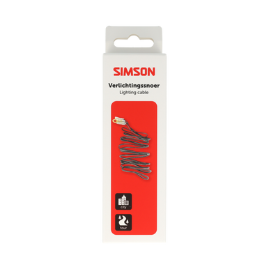 De betrouwbare verbinding voor je verlichting. Dit twee-aderige snoer is essentieel voor het aansluiten van je dynamo op de koplamp of het achterlicht. Het snoer is soepel en duurzaam. Voor een professionele afwerking raden we aan om het snoer elke 20 cm vast te zetten aan het frame met Simson kabelbinders.