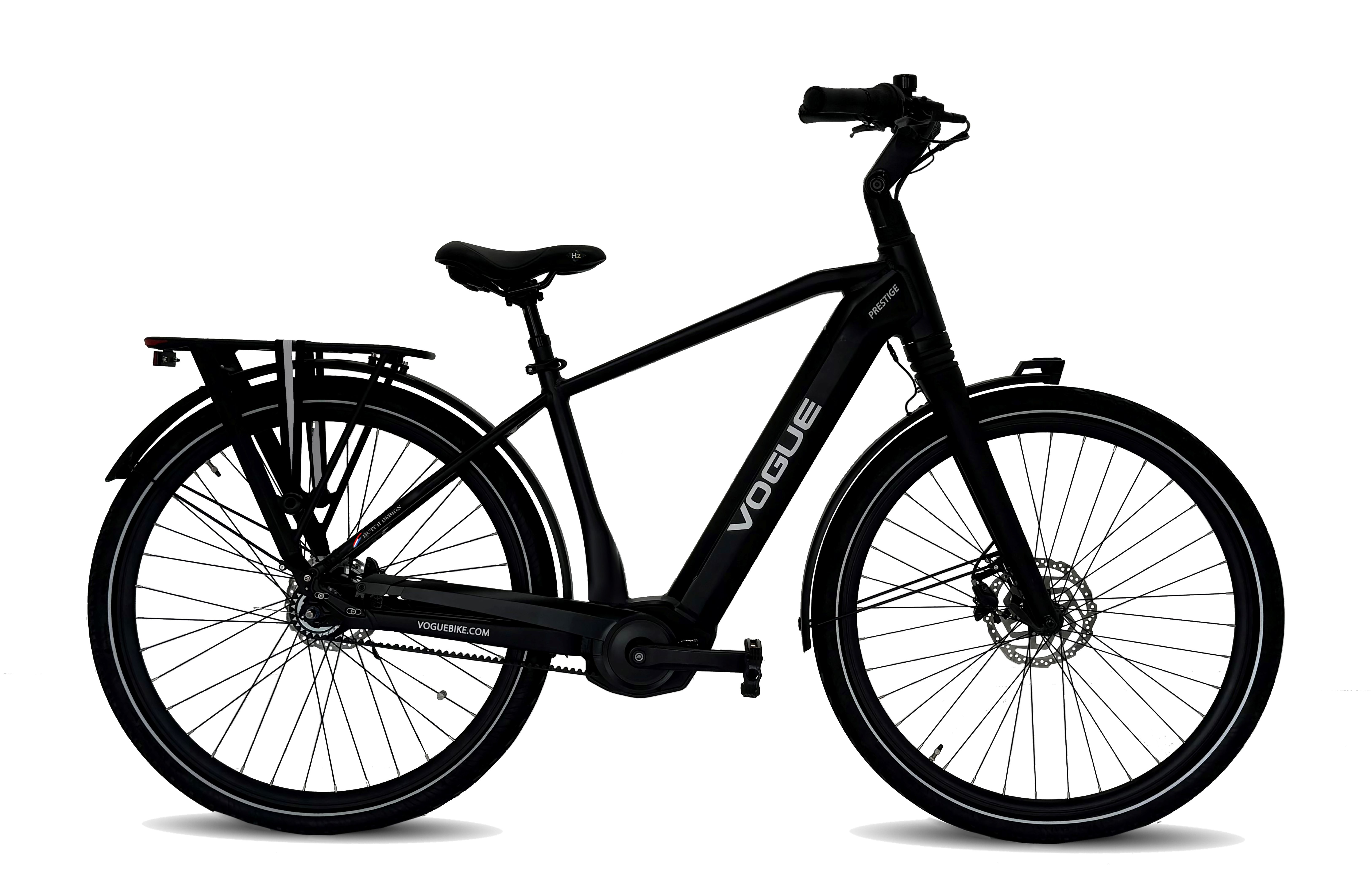 De Vogue Prestige N7 is een elegante krachtige elektrische fiets die gemaakt is voor dagelijks comfort. Hij doet zijn naam dan ook echt eer aan. Het heren frame is stijlvol strak en zeer stijf. De krachtige 80Nm Motinova Volance Plus motor op deze Vogue Prestige N7 is perfect gepositioneerd, en zorgt daardoor voor een zeer goede gewichtsverdeling en een natuurlijke ondersteuning. Bij iedere trap voel je hoe stil en vloeiend hij werkt. De uitneembare 522Wh accu zit in het frame van de Vogue Prestige N7, waardoor de fiets extra stabiel aanvoelt. De Shimano hydraulische schijfremmen hebben een zeer groot remvermogen en kun je goed doseren. Veiligheid staat immers voorop. De Gates riemaandrijving op de Vogue Prestige N7 fietst niet alleen licht, maar is ook geluidloos en hoef je nooit in te vetten. Bovendien gaat hij tot wel 3x langer mee dan een ketting. De geveerde Monoshock voorvork zorgt voor optimaal comfort, ook wanneer je op een wat minder vlakke weg fietst. Samen met de Shimano Nexus 7 naafversnelling maakt dit de Vogue Prestige N7 lekker onderhoudsvriendelijk. Verder heeft de Vogue Prestige N7 een stabiele standaard, een stevige bagagedrager, verlichting op de accu en een fraai in de stuurpen geintegreerd display.