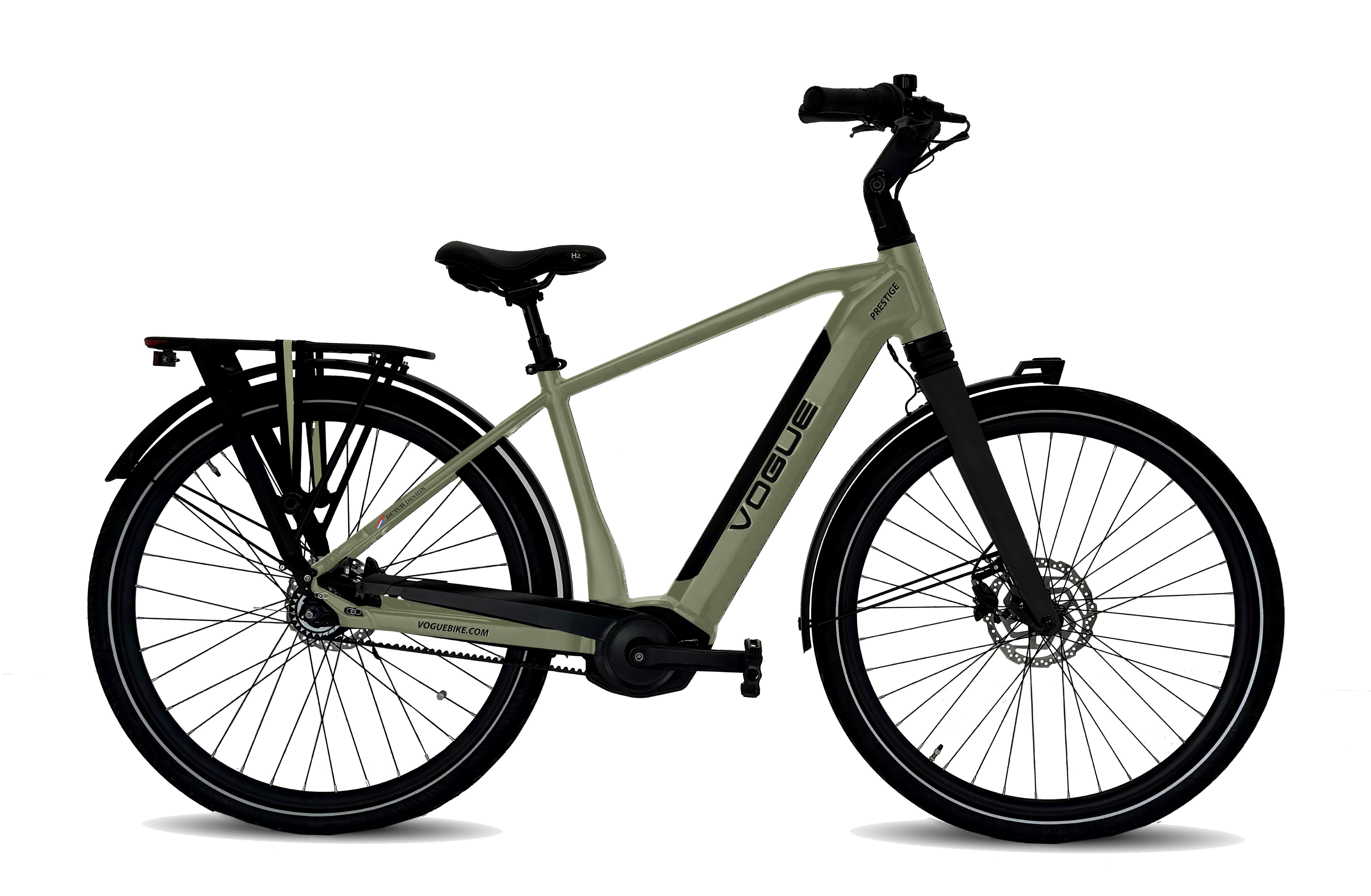 De Vogue Prestige N7 is een elegante krachtige elektrische fiets die gemaakt is voor dagelijks comfort. Hij doet zijn naam dan ook echt eer aan. Het heren frame is stijlvol strak en zeer stijf. De krachtige 80Nm Motinova Volance Plus motor op deze Vogue Prestige N7 is perfect gepositioneerd, en zorgt daardoor voor een zeer goede gewichtsverdeling en een natuurlijke ondersteuning. Bij iedere trap voel je hoe stil en vloeiend hij werkt. De uitneembare 522Wh accu zit in het frame van de Vogue Prestige N7, waardoor de fiets extra stabiel aanvoelt. De Shimano hydraulische schijfremmen hebben een zeer groot remvermogen en kun je goed doseren. Veiligheid staat immers voorop. De Gates riemaandrijving op de Vogue Prestige N7 fietst niet alleen licht, maar is ook geluidloos en hoef je nooit in te vetten. Bovendien gaat hij tot wel 3x langer mee dan een ketting. De geveerde Monoshock voorvork zorgt voor optimaal comfort, ook wanneer je op een wat minder vlakke weg fietst. Samen met de Shimano Nexus 7 naafversnelling maakt dit de Vogue Prestige N7 lekker onderhoudsvriendelijk. Verder heeft de Vogue Prestige N7 een stabiele standaard, een stevige bagagedrager, verlichting op de accu en een fraai in de stuurpen geintegreerd display.