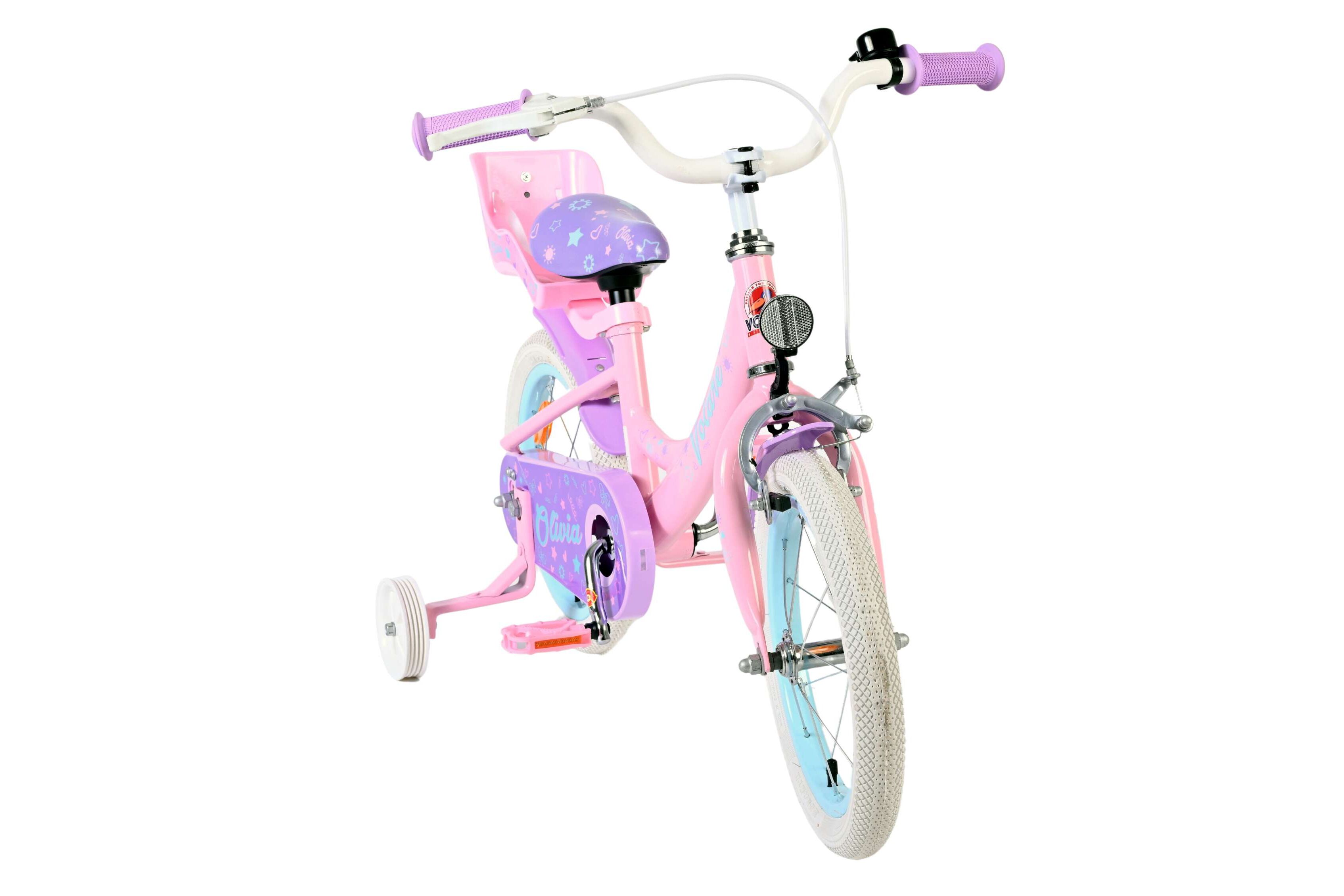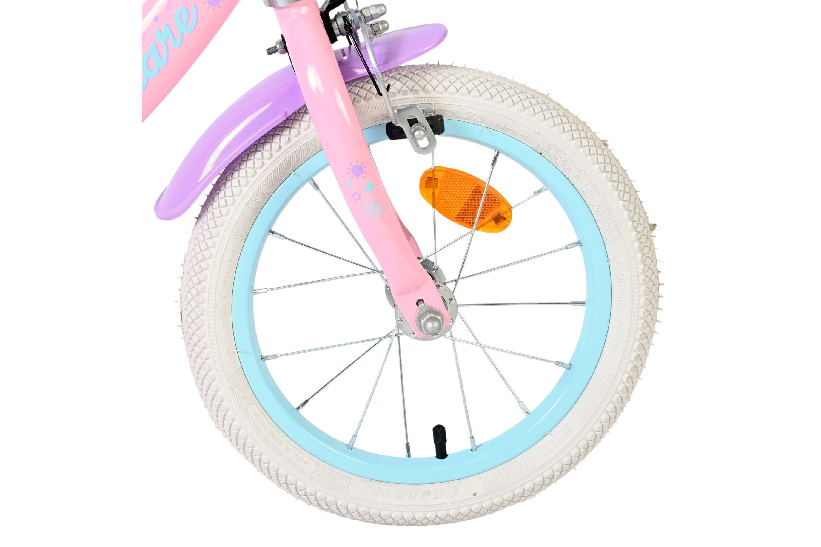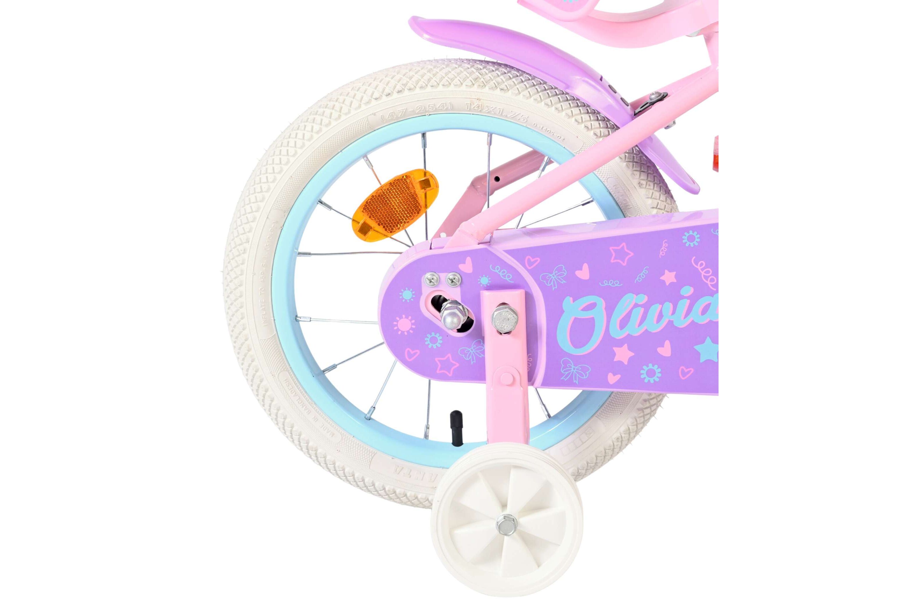 Deze Volare Olivia is dé fiets waarop ieder meisje gezien wil worden. Met de zachte roze kleur en de paarse kettingkast en zadel is dit fietsje een echte blikvanger. In het poppenzitje achterop de Volare Olivia kan de pop meegenomen worden, en in het fietsmandje voorop kunnen alle andere belangrijke spulletjes mee. Hierdoor kunnen uw kindjes de handjes veilig aan het stuur houden. Met de handrem en terugtraprem kan je snel stoppen en het zachte zadel en de handvaten van deze Volare Olivia zorgen voor extra comfort en ter bescherming van de kleine vingertjes is de kettingkast gesloten. De afneembare zijwieltjes zorgen ervoor dat deze Volare Olivia een ideale fiets is om snel en goed te kunnen leren fietsen. De 14 inch luchtbanden van deze Volare Olivia fiets zorgen ervoor dat de fiets geschikt is voor meisjes tussen de 3,5 en 5 jaar oud met kledingmaat 98-110.