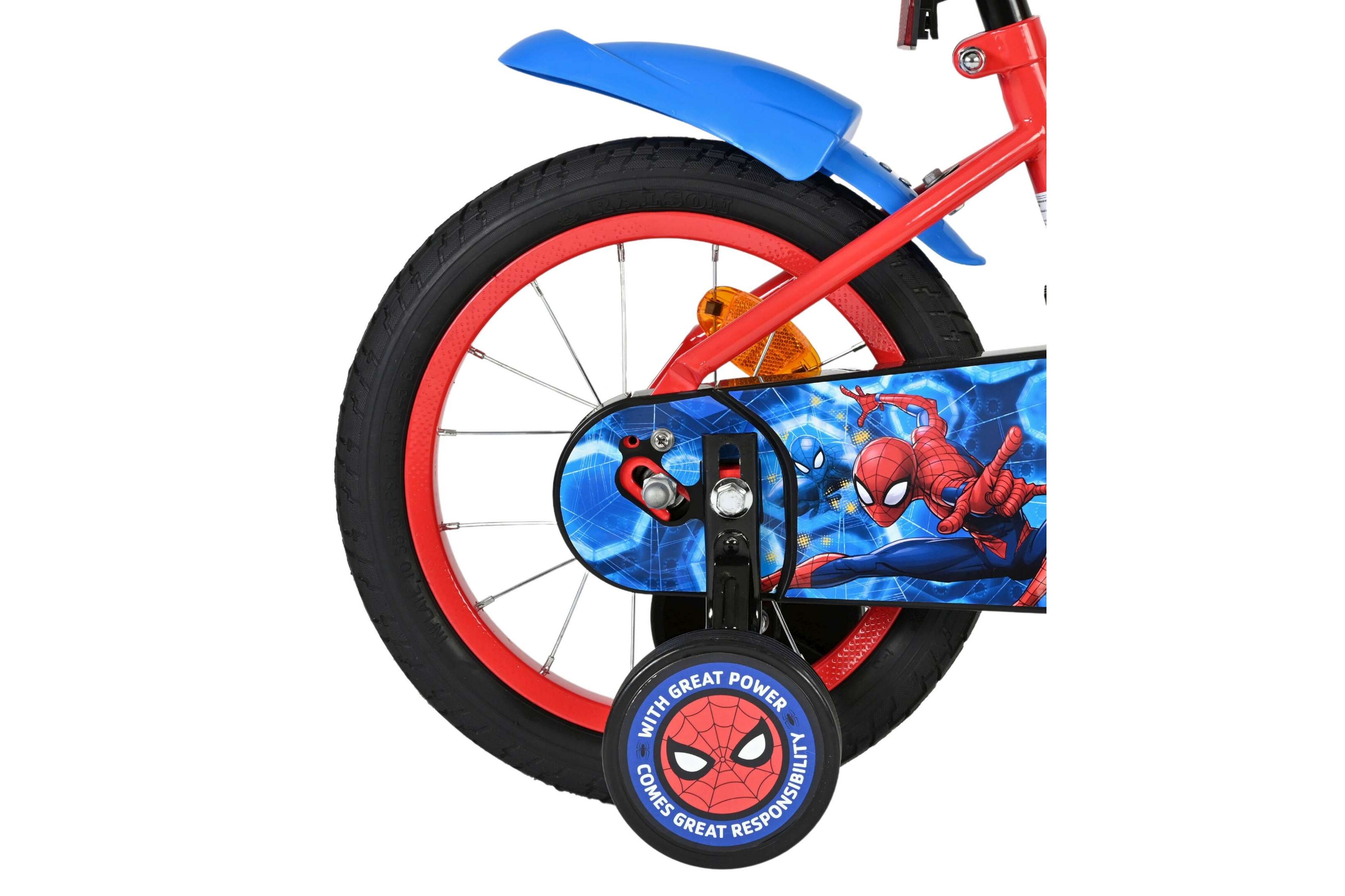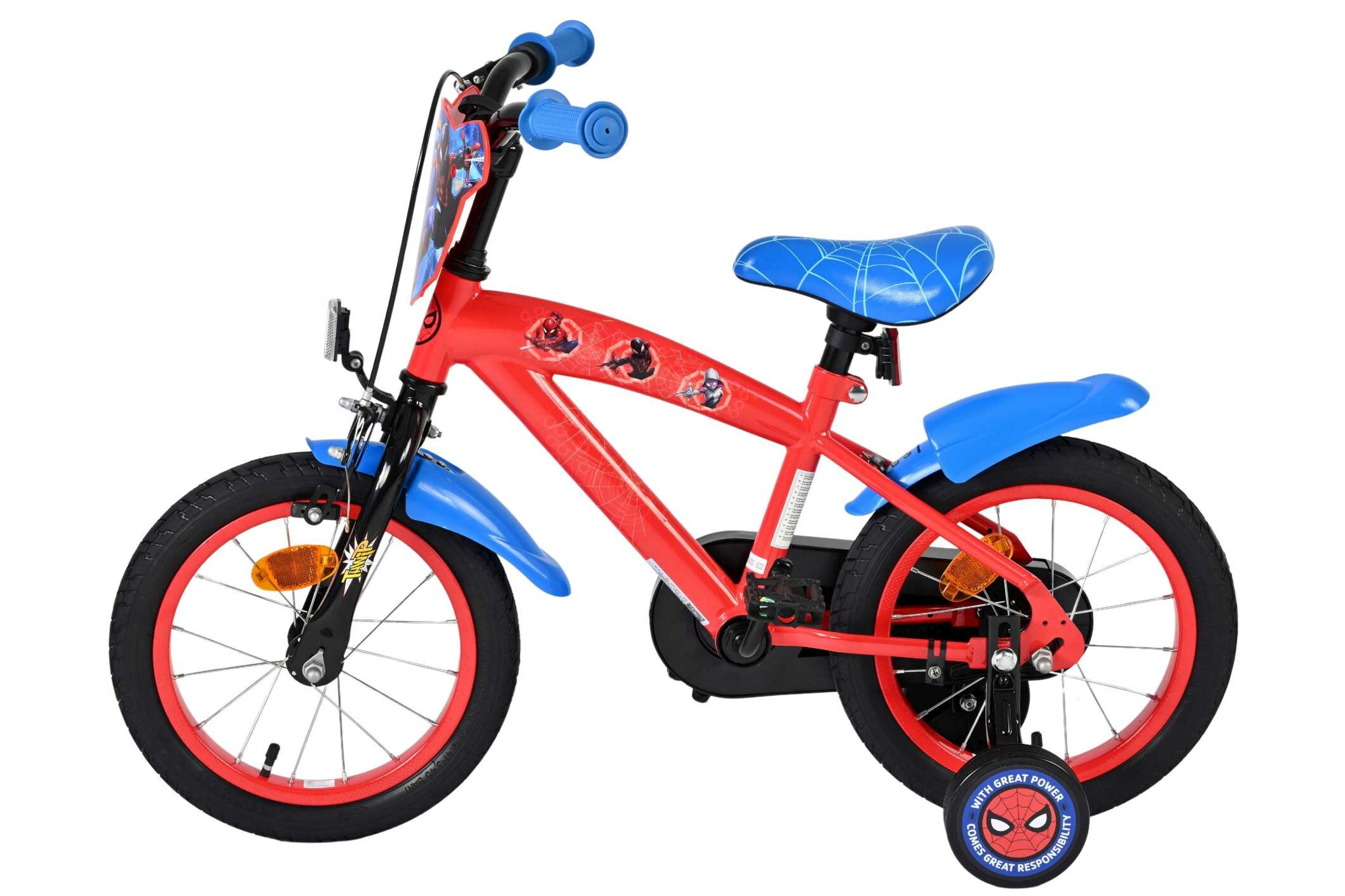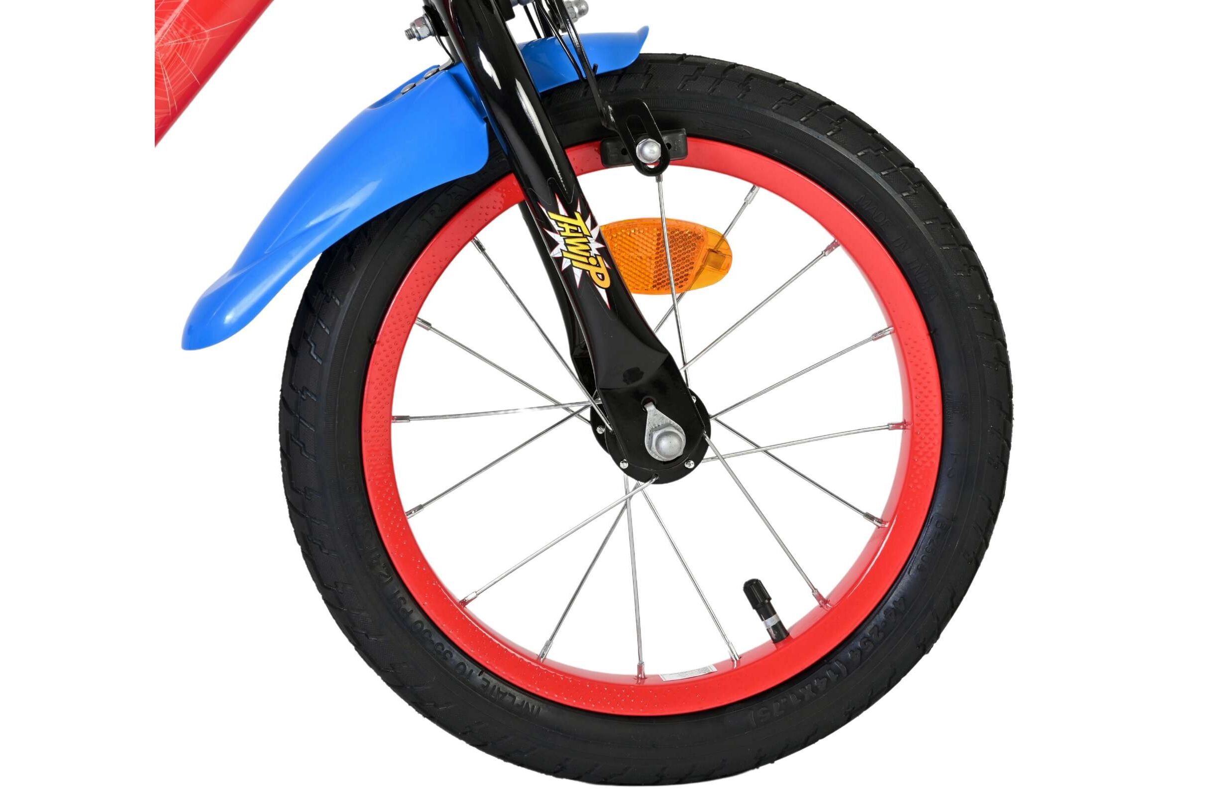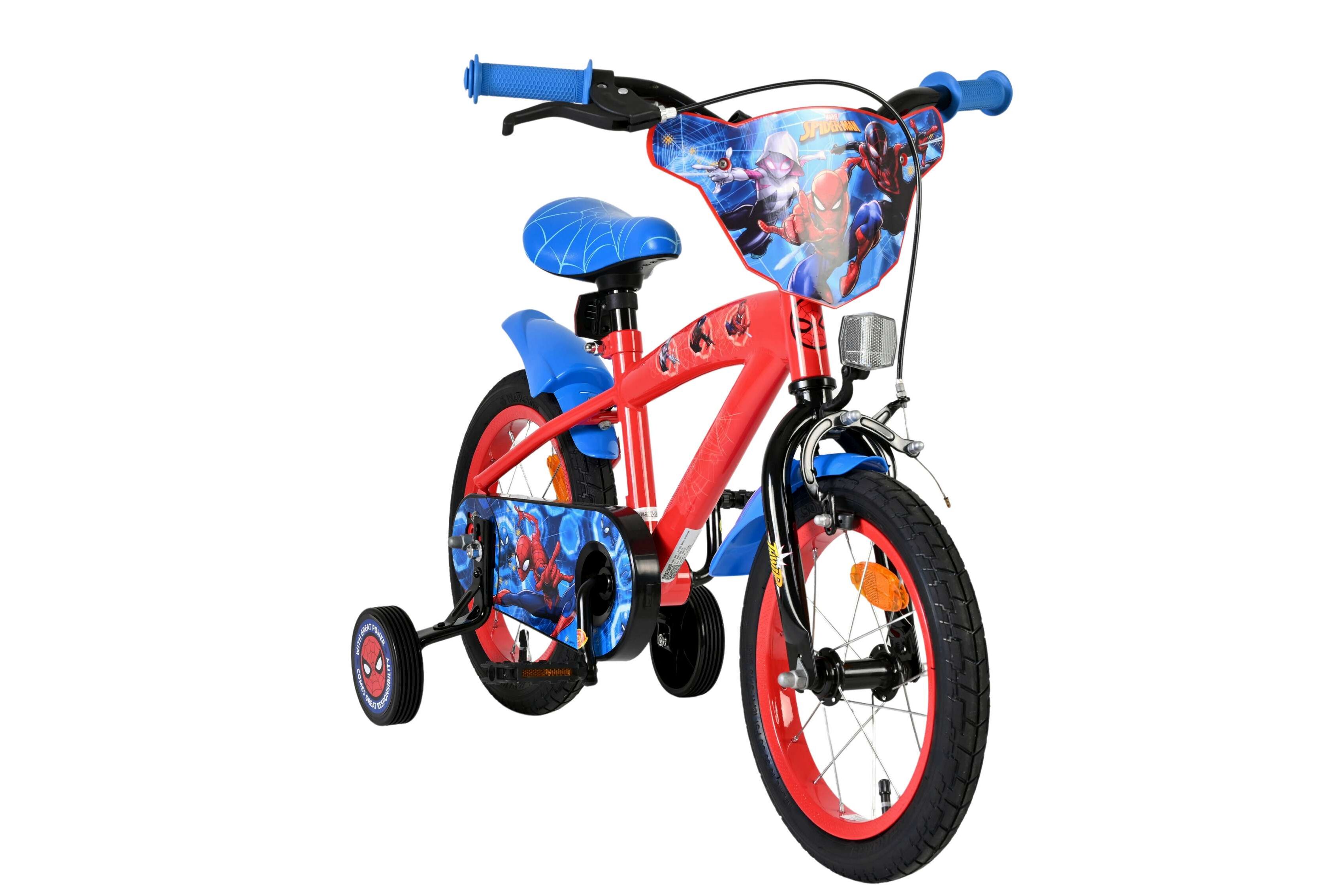 De Volare Marvel Spider-Man cruiser 14inch is compleet met zijwieltjes om veilig te kunnen leren fietsen. Met de terugtraprem en handrem kun je makkelijk stoppen op deze stoere Volare Marvel Spider-Man cruiser. Verder heeft de Volare Marvel Spider-Man cruiser spatborden en een gesloten kettingkast. En om hem helemaal cool te maken zitten er de mooiste Marvel Spider-Man afbeeldingen op. Deze Volare Marvel Spider-Man cruiser 14inch is geschikt voor kinderen van 3,5 tot 5 jaar met een kledingmaat van 98 tot 110.
