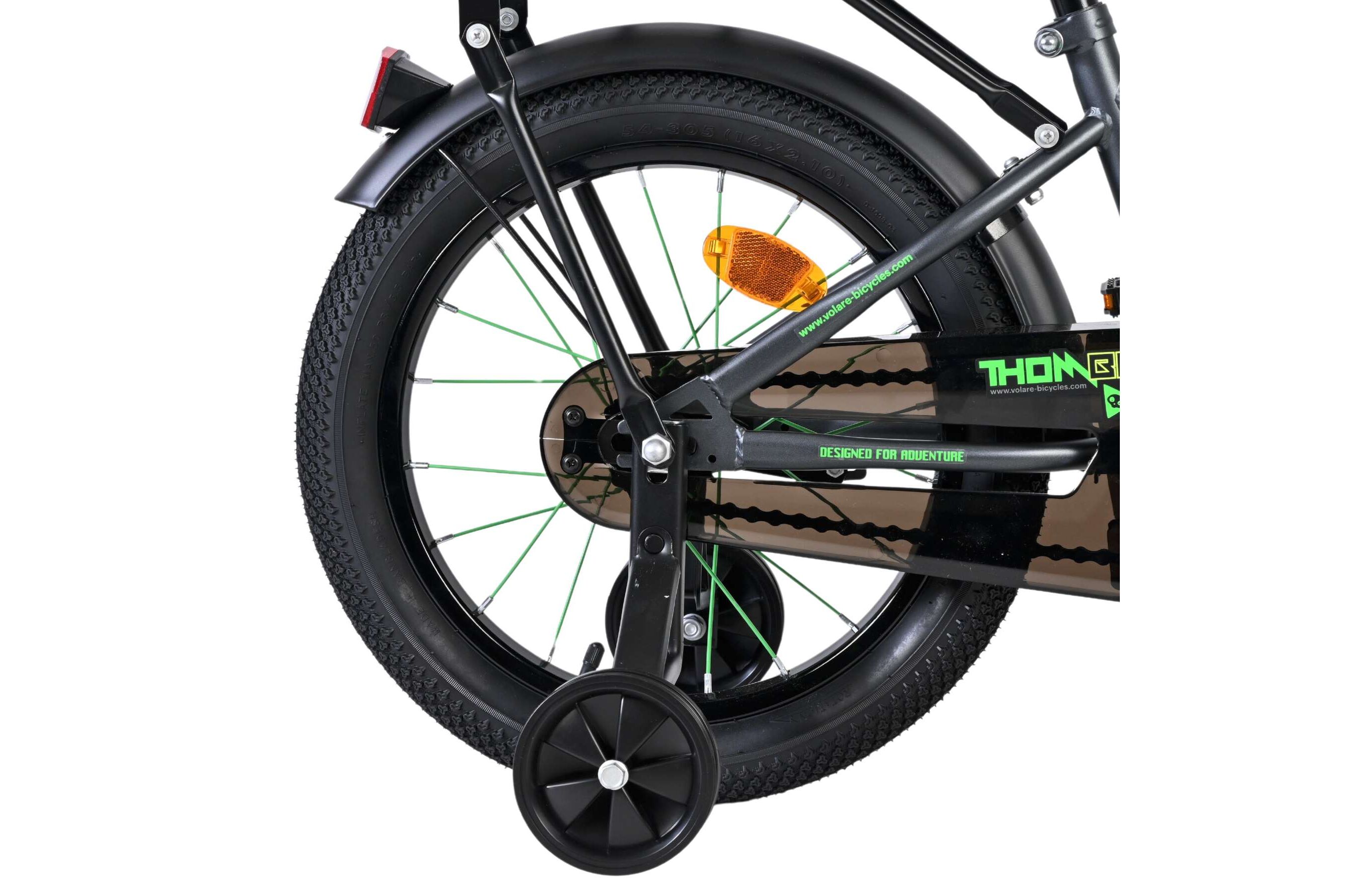 De Volare Thombike 16inch is een stoere jongensfiets voor kinderen van 4 tot 6 jaar. Dit Volare Thombike fietsje is zeer compleet uitgevoerd met onder andere spatborden en bagagedrager. En zoals de meeste kinderfietsen is ook deze fiets voorzien van een terugtraprem achter en een handrem voor. De Volare Thombike heeft stevige zijwieltjes om snel te kunnen leren fietsen. Deze Volare Thombike 16inch is geschikt voor kinderen van 4 tot 6 jaar met een kledingmaat van 104 tot 110. Fiets jij straks ook op deze Volare Thombike jongensfiets?