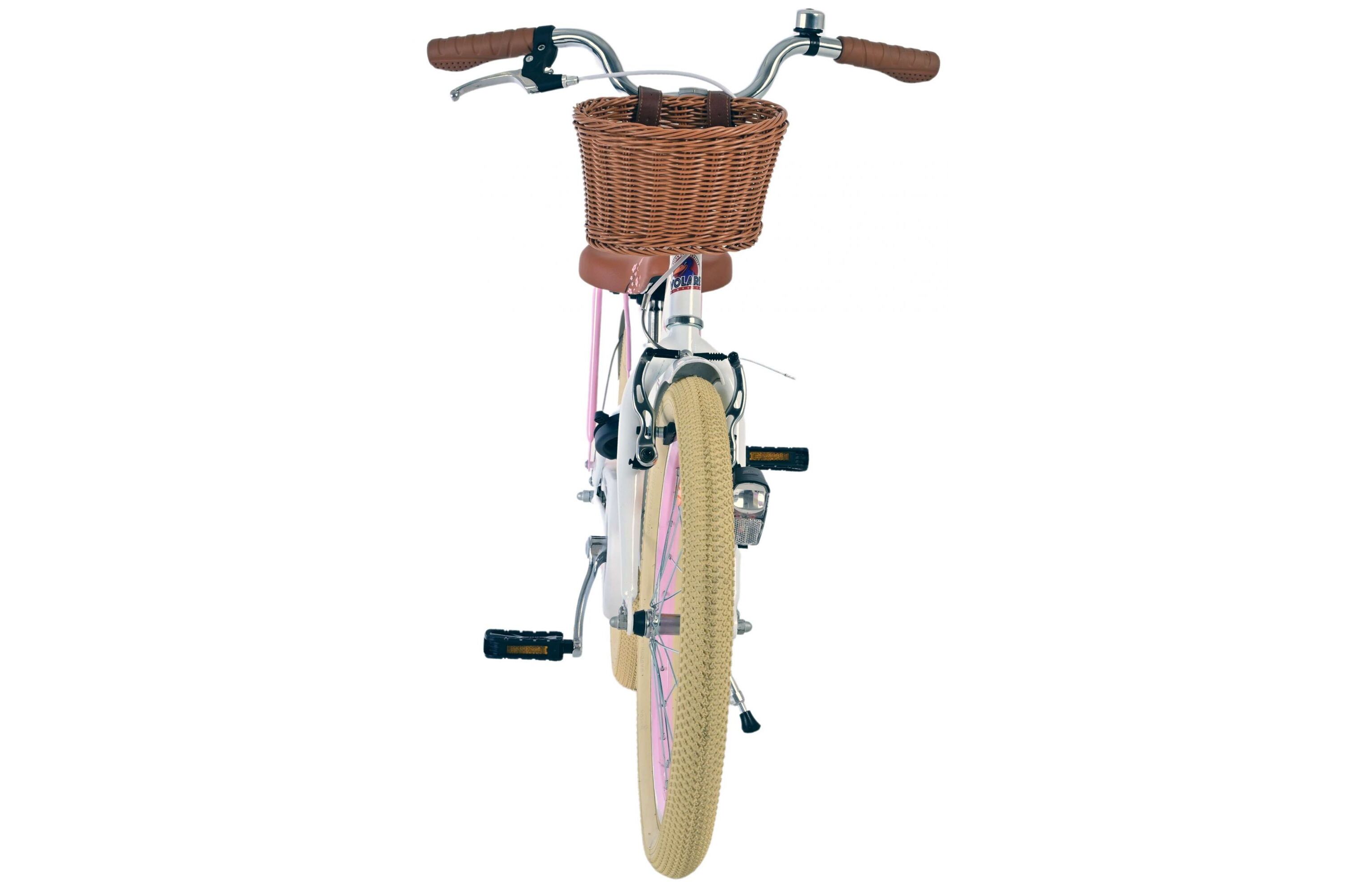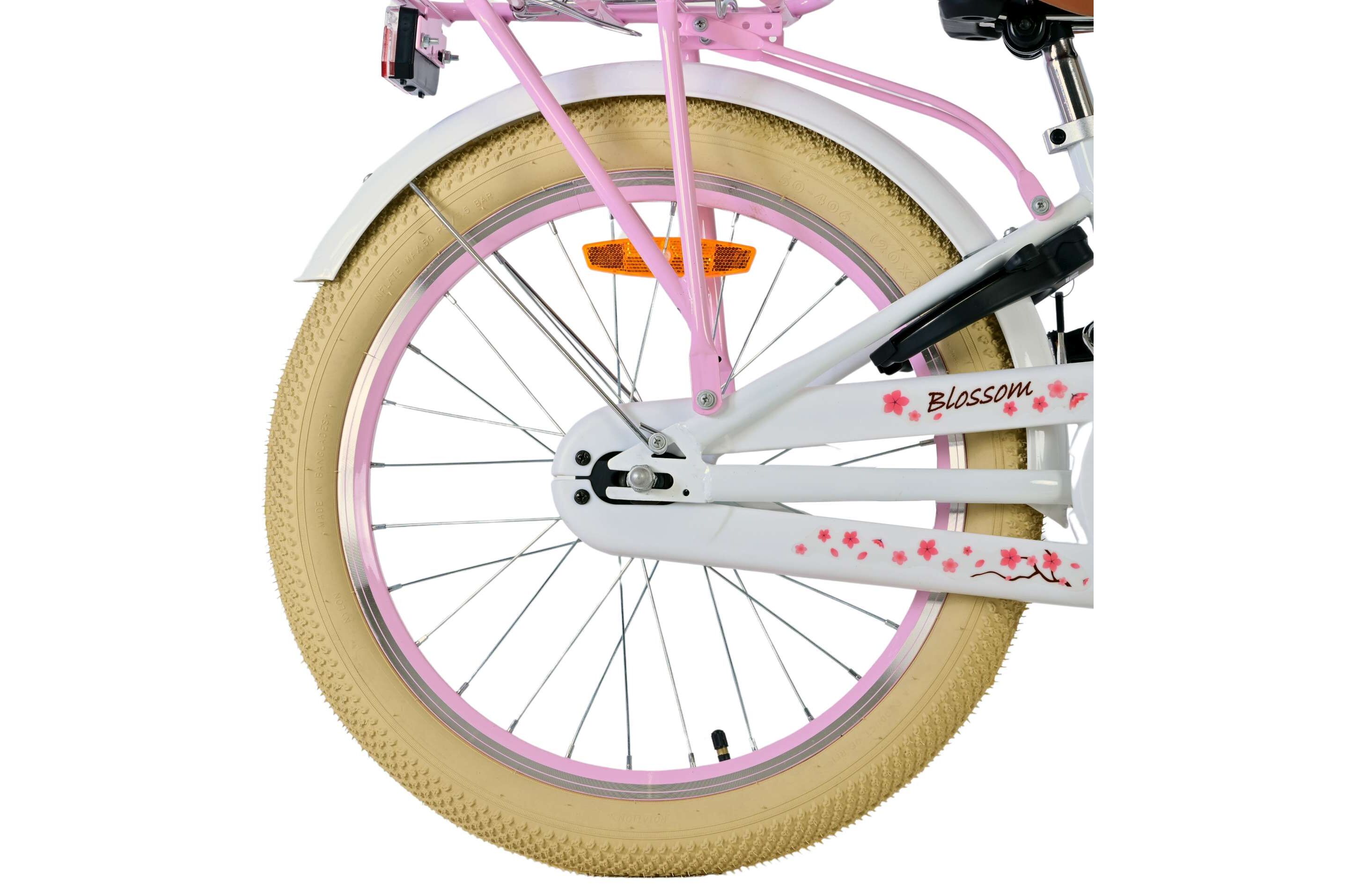 Deze beeldige Volare Blossem is dé fiets die ieder meisje wil hebben. Op de stevige bagagedrager achterop en in het mooie mandje voorop deze Volare Blossem meisjesfiets kunnen alle belangrijke spulletjes meegenomen worden. Hierdoor kunnen uw kindjes de handjes veilig aan het stuur houden. Met de handrem en terugtraprem kan je snel stoppen en het zachte zadel en de handvaten van deze Volare Blossem zorgen voor extra comfort. Voor de veiligheid is de fiets voorzien van LED verlichting op batterijen en reflectoren in de wielen. En ter bescherming van de kleine vingertjes is de kettingkast gesloten. Met het slot kun je je Volare Blossem veilig op slot zetten. De 20 inch luchtbanden van deze Volare Blossem fiets zorgen ervoor dat de fiets geschikt is voor meisjes tussen de 6 en 8 jaar oud met kledingmaat 116 -128.