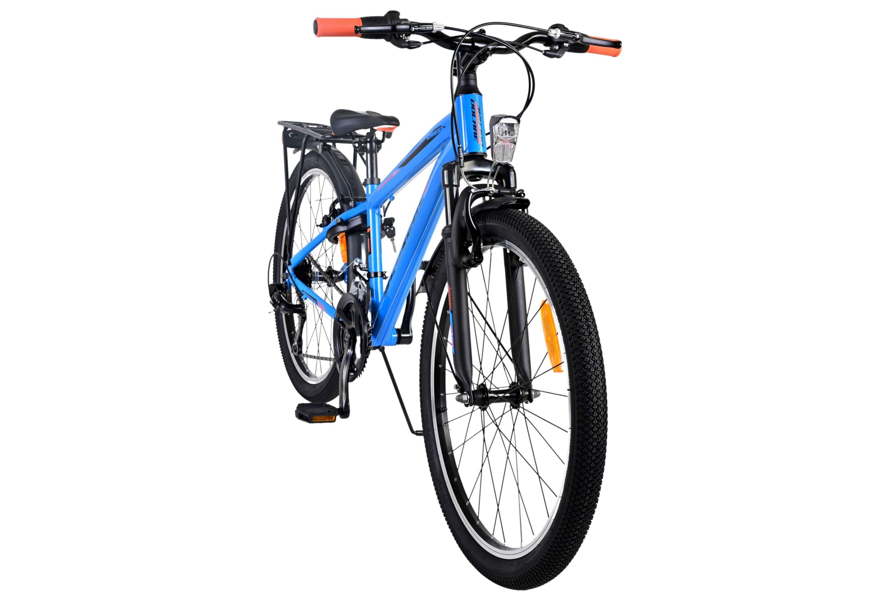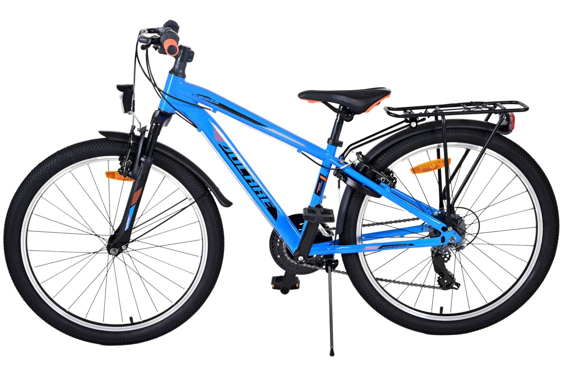 De Volare Cross 21-spd is een coole jongensfiets met een mooi en stoer frame uit de extra hoge kwaliteit Prime serie van Volare. Het model van een mountainbike met geveerde voorvork, maar dan compleet met spatborden, bagagedrager, slot en verlichting zodat deze Volare Cross 21-spd ook geschikt voor dagelijks gebruik is. Met de 21 Shimano Tourney versnellingen kun je zowel op de weg als in het bos heel goed uit de voeten, en met de V-brakes voor en achter kun je makkelijk stoppen op deze stoere Volare Cross 21-spd. En om hem kwalitatief helemaal perfect te maken heeft hij aluminium velgen en een aluminium stuurpen, extra kwaliteit trappers en extra brede spatborden. Deze Volare Cross 21-spd 24inch is geschikt voor kinderen van 8 tot 10 jaar met een kledingmaat van 128 tot 140. Fiets jij straks ook op deze Volare Cross 21-spd 24inch jongensfiets naar school of in het bos?