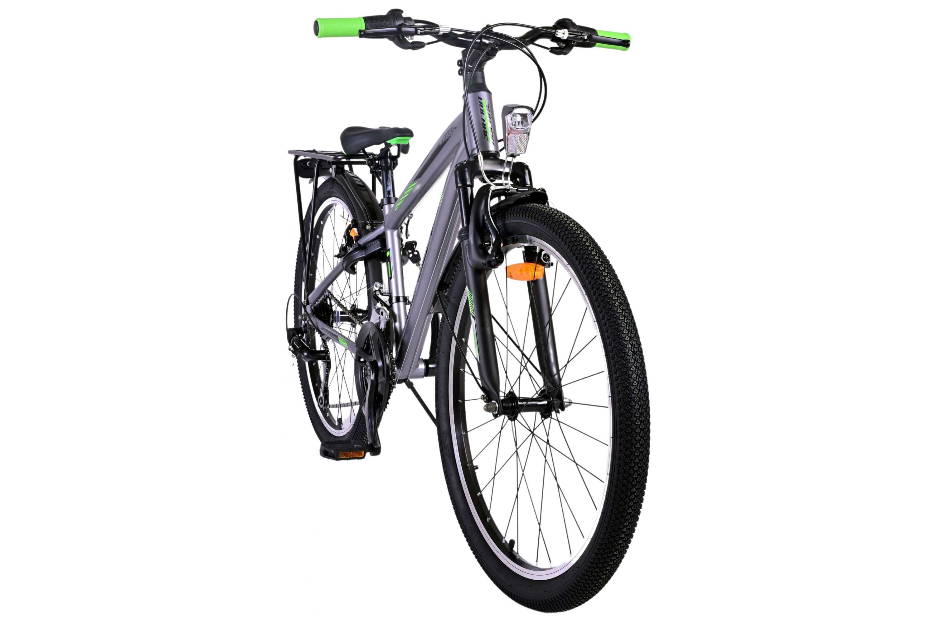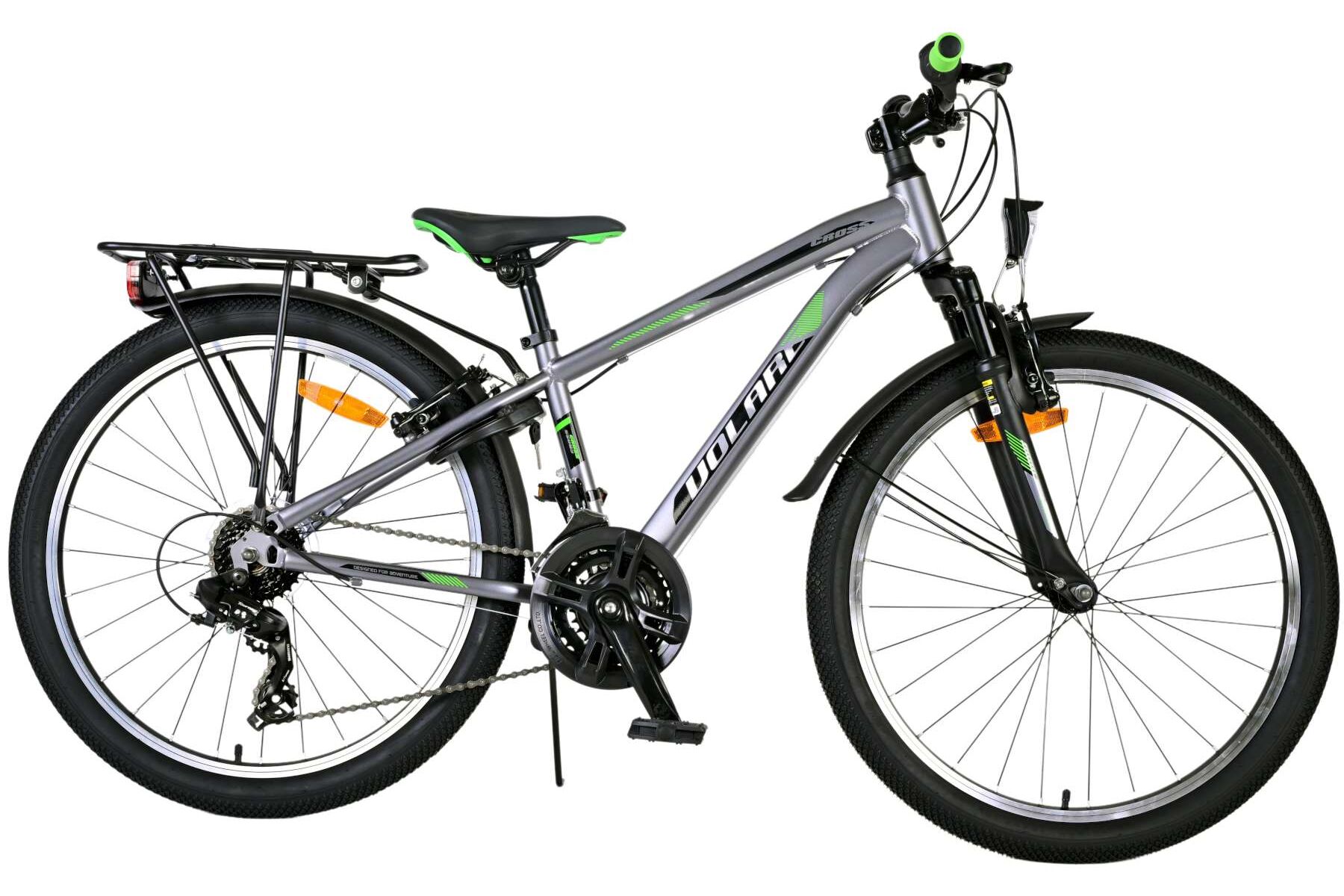 De Volare Cross 21-spd is een coole jongensfiets met een mooi en stoer frame uit de extra hoge kwaliteit Prime serie van Volare. Het model van een mountainbike met geveerde voorvork, maar dan compleet met spatborden, bagagedrager, slot en verlichting zodat deze Volare Cross 21-spd ook geschikt voor dagelijks gebruik is. Met de 21 Shimano Tourney versnellingen kun je zowel op de weg als in het bos heel goed uit de voeten, en met de V-brakes voor en achter kun je makkelijk stoppen op deze stoere Volare Cross 21-spd. En om hem kwalitatief helemaal perfect te maken heeft hij aluminium velgen en een aluminium stuurpen, extra kwaliteit trappers en extra brede spatborden. Deze Volare Cross 21-spd 24inch is geschikt voor kinderen van 8 tot 10 jaar met een kledingmaat van 128 tot 140. Fiets jij straks ook op deze Volare Cross 21-spd 24inch jongensfiets naar school of in het bos?